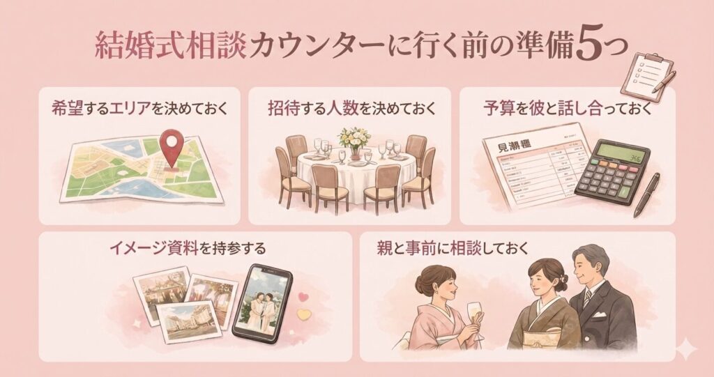 相談カウンターを有効活用するためには、事前準備がとても重要です。ここでは、元プランナーの視点から「これだけは決めておきたい5つのポイント」を解説します。