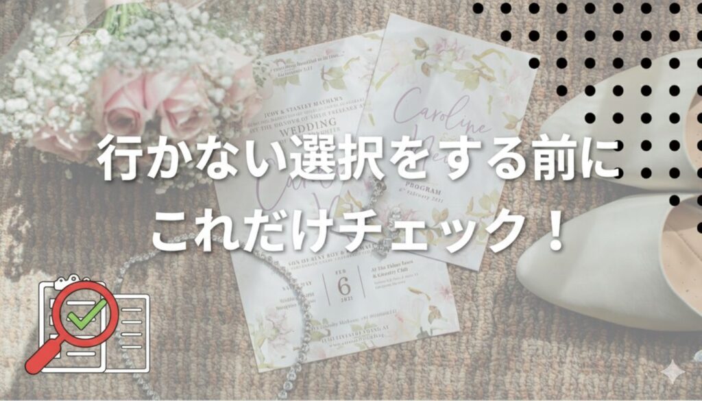 「結婚式相談カウンター 行かない」と検索する人の多くは、行かなくても後悔しないかを確かめたいだけ。元プランナー目線で見ると、行かない理由にはいくつか共通点があります。以下の3つをしっかりチェックして不安に備えていきましょう!