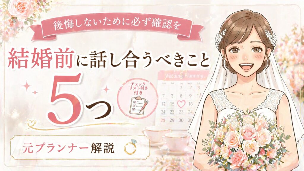 結婚前に話し合うべきこと5つ【チェックリスト付き】プロポーズ後すぐ確認を|元プランナー解説